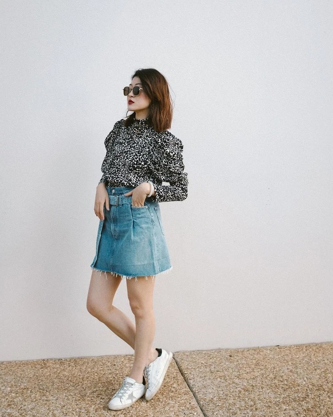 Chân váy denim cũng đang là xu hướng. Giờ chị em bổ sung item này cho tủ đồ thì sẽ mặc được quanh năm suốt tháng. Chân váy denim có sự đan xen giữ nét nữ tính và vẻ bụi bặm, trẻ trung. Đây cũng là một trong những kiểu chân váy dễ mix đồ nhất. Chỉ cần bắt cặp chân váy denim với áo sơ mi/blouse hay một mẫu áo len mỏng bất kỳ trong tủ đồ, chị em dễ dàng có được outfit sành điệu miễn chê.